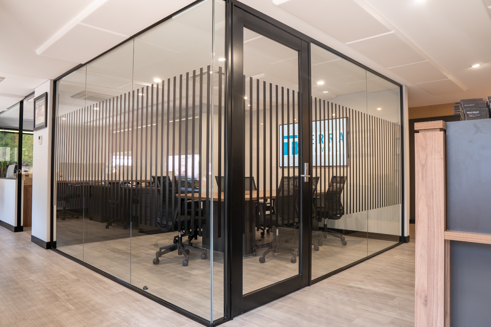 Professional office and interior branding — reception signs, wall graphics and wayfinding systems that complete your space.