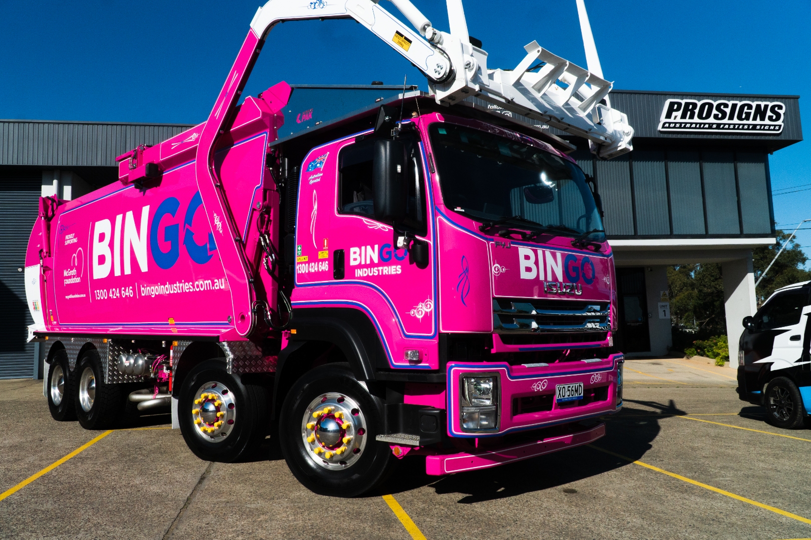 BINGO Industries partners with Pro Signs as their ongoing fleet branding specialist — from skip trucks and semi-trailers to plant and service vehicles, Pro Signs delivers full graphics, safety decals, numbering and custom wrap kits that keep BINGO’s fleet clean, consistent and instantly recognisable nationwide.